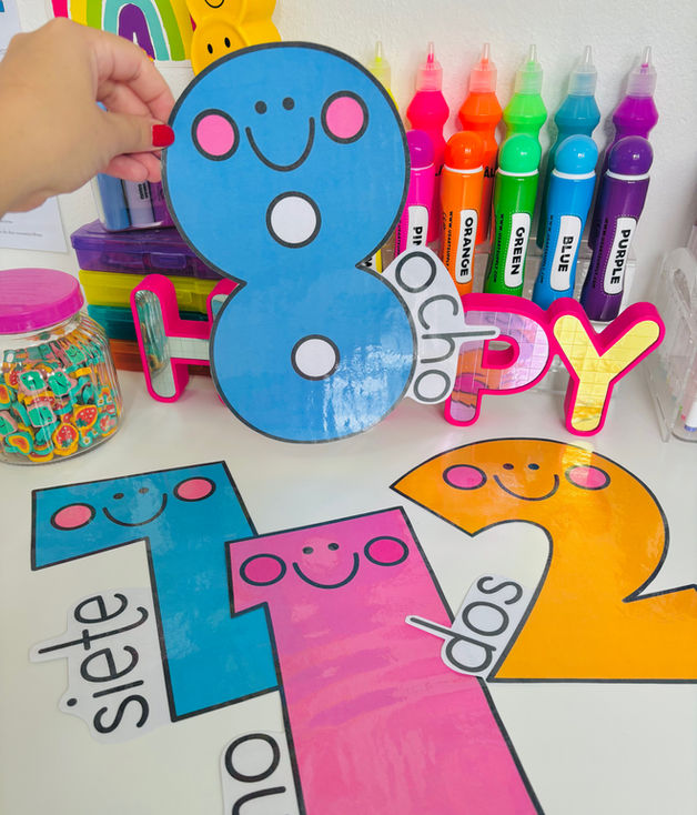 Decora tu salón de clases con éstos brillantes números del 1 al 10 con su escritura.