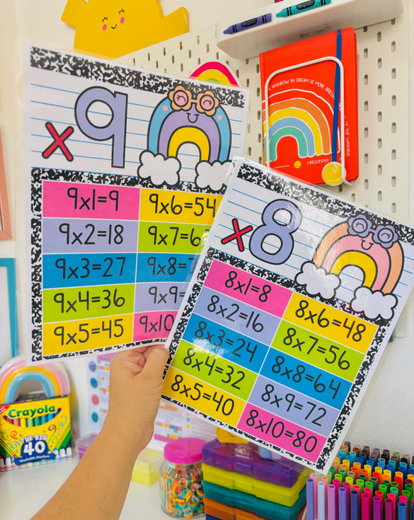 Referentes visuales de las Tablas de multiplicar del 1 al 10 con la Temática de composition.